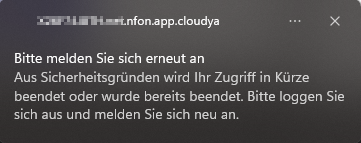 Aus Sicherheitsgründen müssen sich alle (Cloudya-) Nutzer nach spätestens 45 Tagen erneut anmelden. Der nebenstehende Hinweis soll Nutzer an diese Frist erinnern.